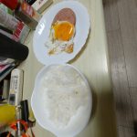 それから、ヘルパー交代して、夕御飯にハムエッグとご飯を食べました。