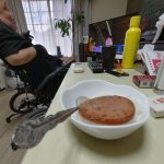 その後、ヘルパー交代して、お昼にはハムとご飯を食べてから、薬を飲みました。