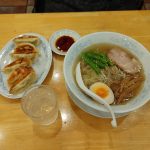 それから餃子の満州に行きました。塩ラーメンと餃子を食べました。