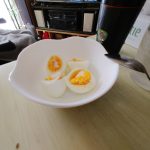 その後、ヘルパー交代して、朝ごはんにゆで玉子を二個作ってもらいました。